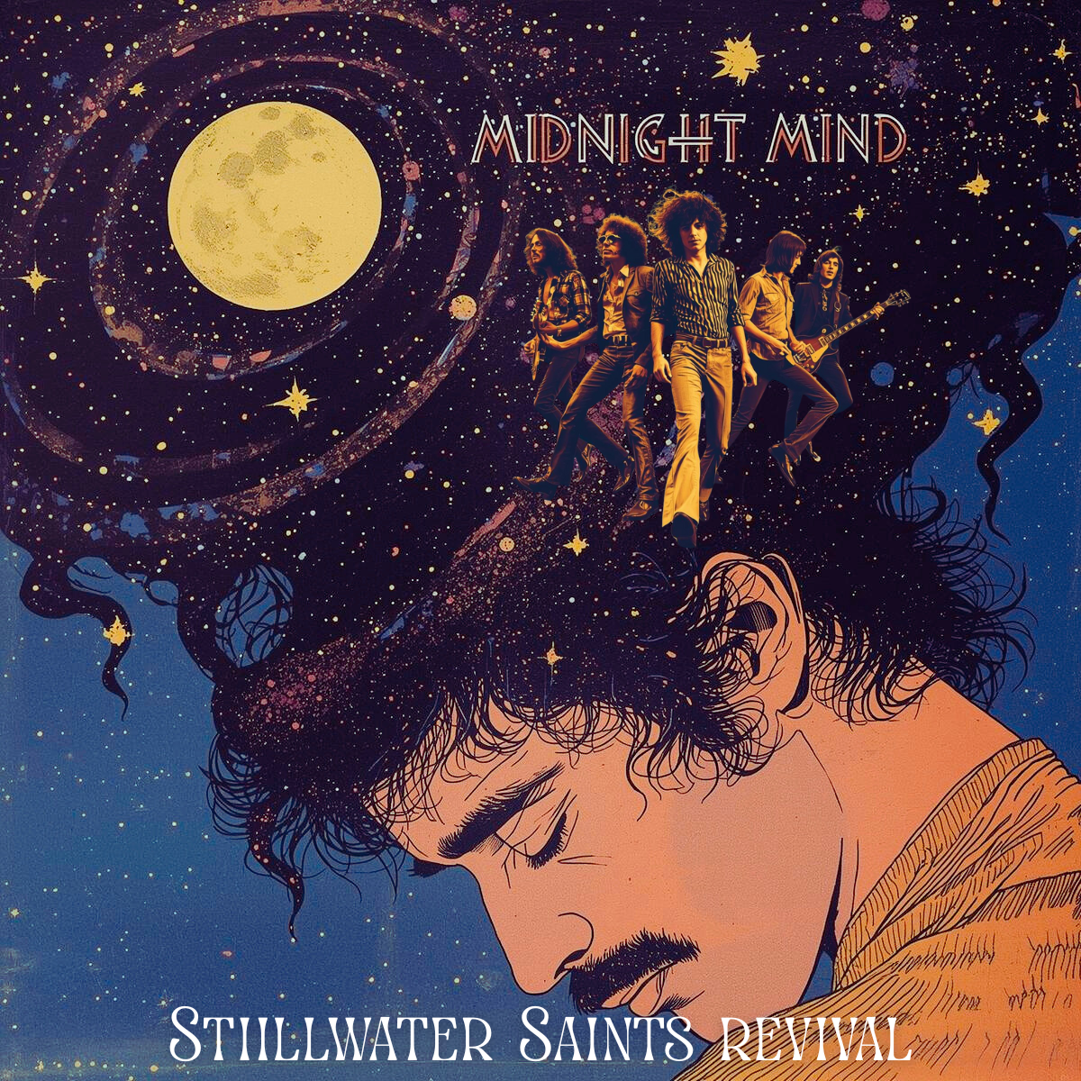 Blending the free-spirited sound of the ’60s, the soulful swagger of the ’70s, and the arena-sized energy of the ’80s, The Stillwater Saints Revival channels the timeless power of vintage rock into gospel-fueled fire. Their sound fuses Southern soul, British psych, and Laurel Canyon warmth—The Doors meeting Creedence Clearwater Revival and The Beatles before all three stumble joyfully into a revival tent. Poetic lyrics, raw vocals, and vintage grooves make every song feel like a rediscovered record from 1969—psychedelic, gospel-tinged, and burning with conviction.